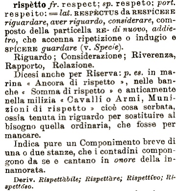 Etimo: rispettare v. tr. [lat. respectare, propr. «guardare indietro», intensivo di respicĕre, part. pass. respectus] (io rispètto, ecc.). –